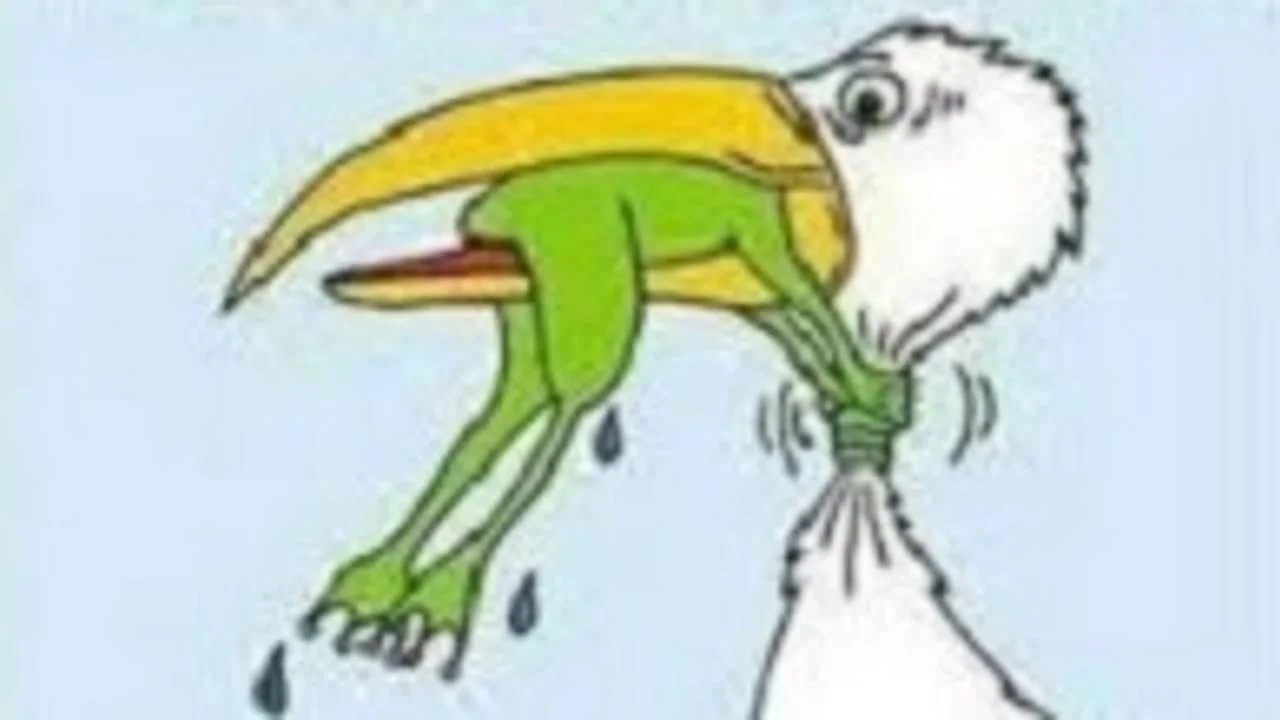 I often smile when I see the cartoon of the frog about to be swallowed by a pelican. All you can see are the frog’s hind feet sticking